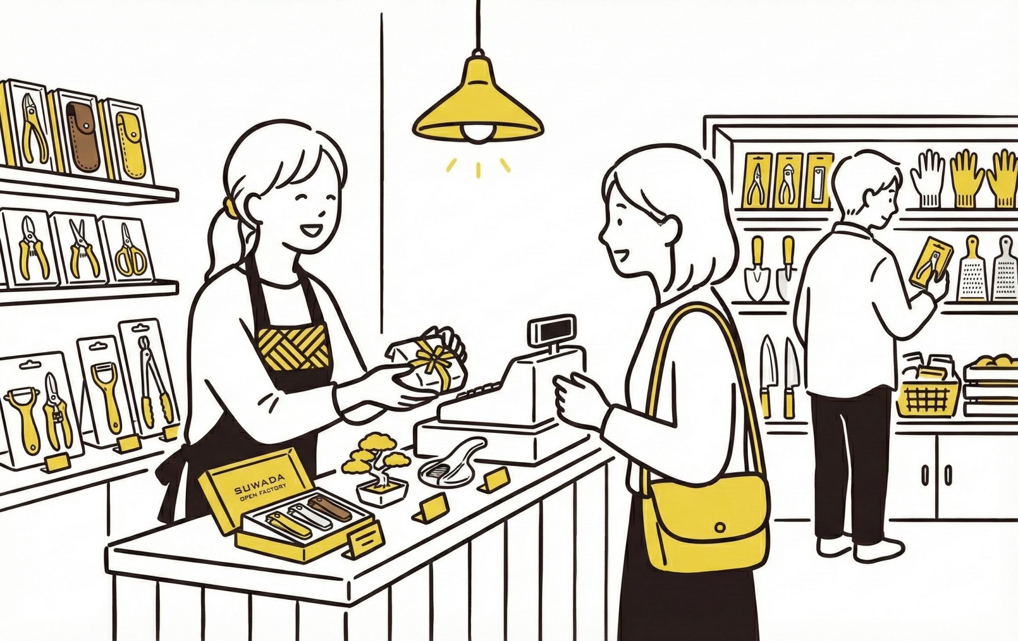 お客様にSUWADA製品や、ものづくりの魅力をお伝えするショップでのお仕事です。