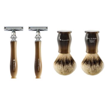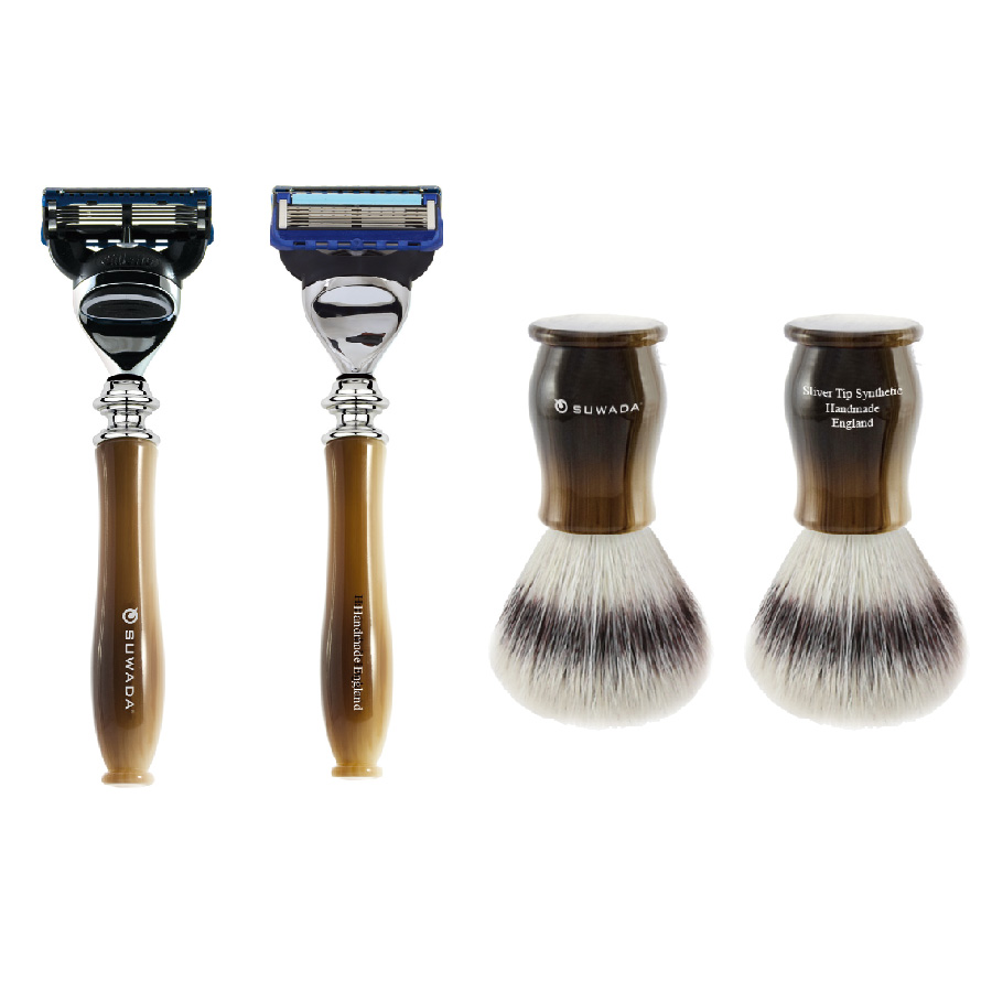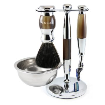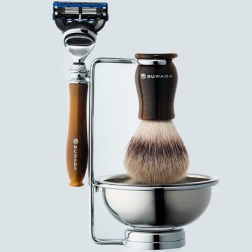 チャッツワース 両刃カミソリ 4点セット 44,000円(税込) ブラシの毛は、1頭のアナグマからわずかしか採取できない最高品質のシルバーチップのみを使用し、その繊細で柔らかな感触は贅沢に時間を使いシェービングタイムを楽しむのに最適です。