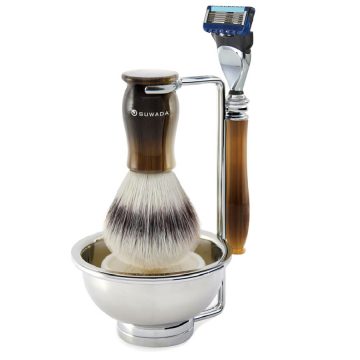クラシックレイザー シェービング4点セット 29,700円(税込) ブラシの毛は、高品質のソリッドナイロンファイバーを使用し、柔らかな感触を保ちながら、洗浄後の乾きも早くお手入れの必要が少ないため、忙しい方でも日常の中でシェービングタイムを楽しむのに最適です。