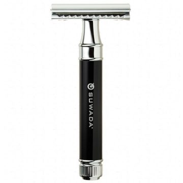 両刃カミソリ ショート 7,150円(税込) 真鍮で作られたハンドルは、高密度アクリルとクロームメッキによってバランスよくコーティングされています。ヘッドには伝統的な両刃セーフティーレイザーが取り付けられており、他のものでは味わうことの出来ないダイナミックな剃り心地をお楽しみいただけます。